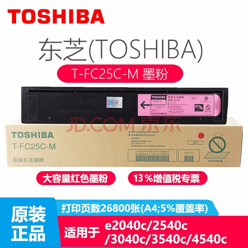 • 商品名称:东芝(TOSHIBA)T-FC25C原装粉盒(红)