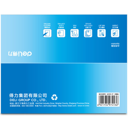 • 商品名称:得力(deli)7414 莱茵河复印纸 80g/A4 8包/箱
