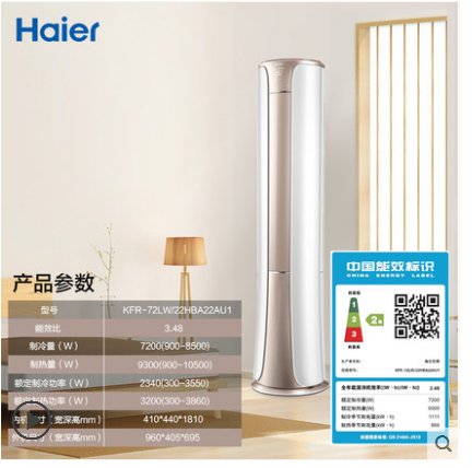 • 商品名称:Haier/海尔 KFR-72LW/22HBA22AU1 3匹立式二级能效自清洁柜机空调