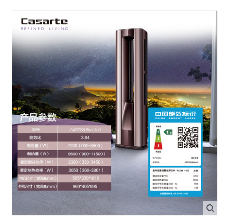• 商品名称:Casarte/卡萨帝 CAP722UBA(A1) 轻离子变频静音净化3匹柜机空调