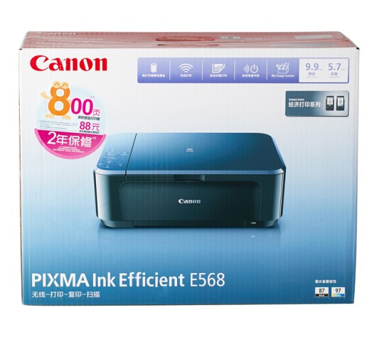 • 商品名称:佳能(Canon) E568 彩色喷墨一体机 学生打印 作业打印(打印 复印 扫描 无线连接 自动双面)
