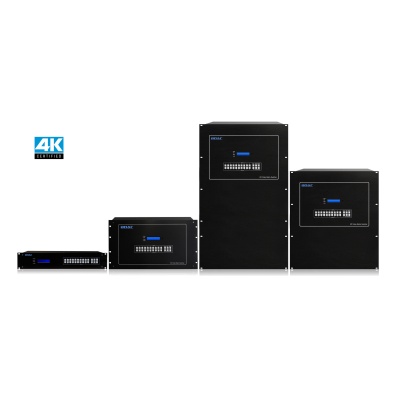 于一个真正模块化、可扩展、可现场配置的高清混合矩阵。其最大的特点是采用插卡式机箱设计,非常适合于在最短的时间内,花费最少的人力成本来安装新的或替换已有的矩阵切换器板卡。从8、16、17、36、72、最大可配置为 144x144。可选择HDMI、DVI、VGA&RGB、3G-SDI、CVBS、YPBPR、Fiber、HDBaseT 等接口形式作为输入输出,解决了视音频会议项目中由于视频信号源种类繁多,各种信号不兼容的困难,并最大程度的节省成本,利于系统升级、扩容及维护。