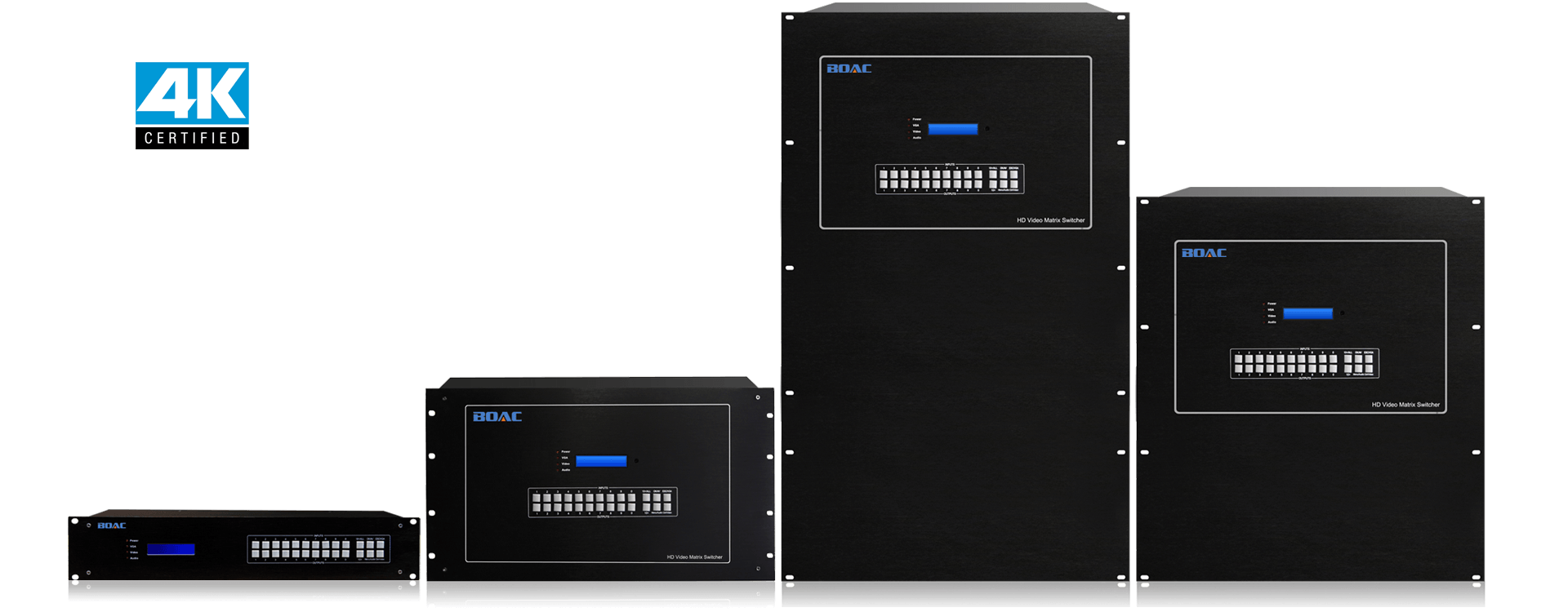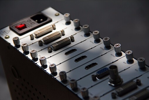 采用卡笼式机箱设计,可支持4-144路不同信号源输入与4-144路的输出,信号接口自由组合,可选择VGA、DVI、3G-SDI、DP、HDMI、CVBS、YPBPR、Fiber、HDBaseT等接口形式作为输入输出,解决了视频会议项目中由于视频信号源种类繁多,各种信号不兼容的困难,并最大程度的节省成本,利于系统升级、扩容及维护。随着数字化科技不断地发展,在的音视频信号处理已经出现了多元化,传统的矩阵已经不能满足会议系统工程的需求了。相比传统矩阵,伯奥克新一代混合插卡矩阵具有灵活多变,切换方便,适用范围广等