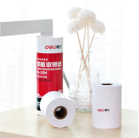 • 商品名称:得力(deli)80mm*58mm热敏收银纸/收银机打印纸/超市小票打印纸 28米/卷 2卷装 3204