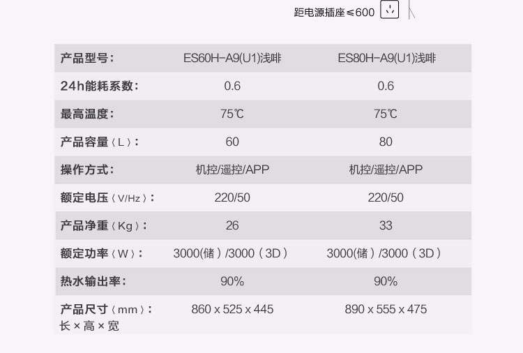 • 商品名称:Haier/海尔 电热水器 ES60H-A9(U1)浅啡