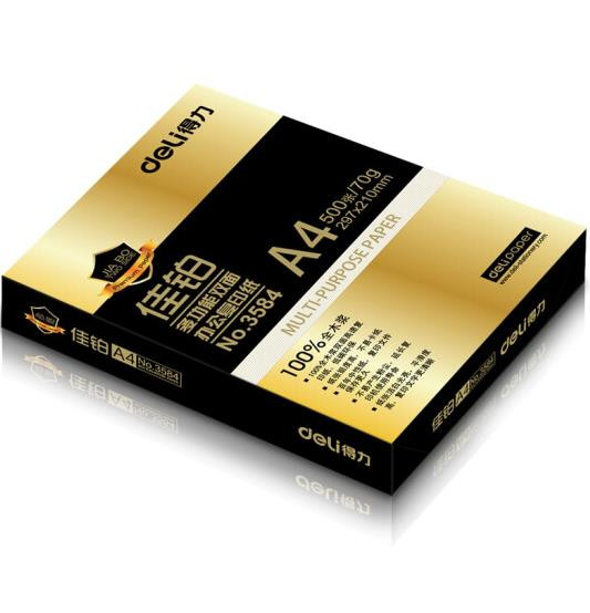• 商品名称:得力(deli) 3584A4 佳铂复印纸 70g 500张/包 单包装